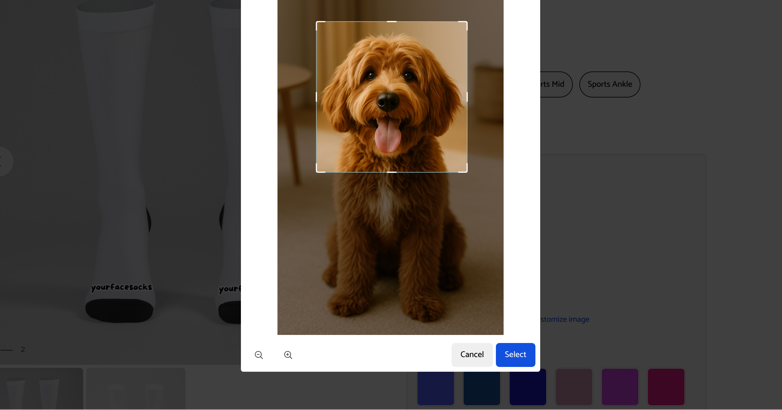 Lade das Bild hoch, und wir entfernen den Hintergrund automatisch. Wähle anschließend deine Sockefarbe und das Hintergrunddesign.