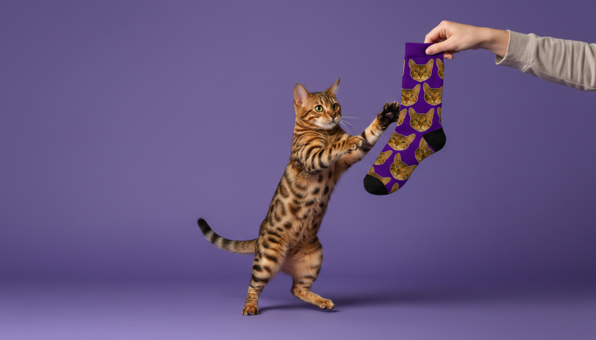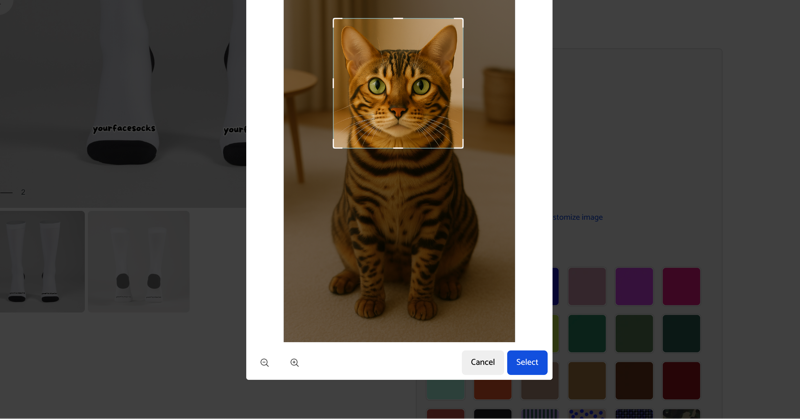 Lade das Bild hoch, und wir entfernen den Hintergrund automatisch. Wähle anschließend deine Sockefarbe und das Hintergrunddesign.